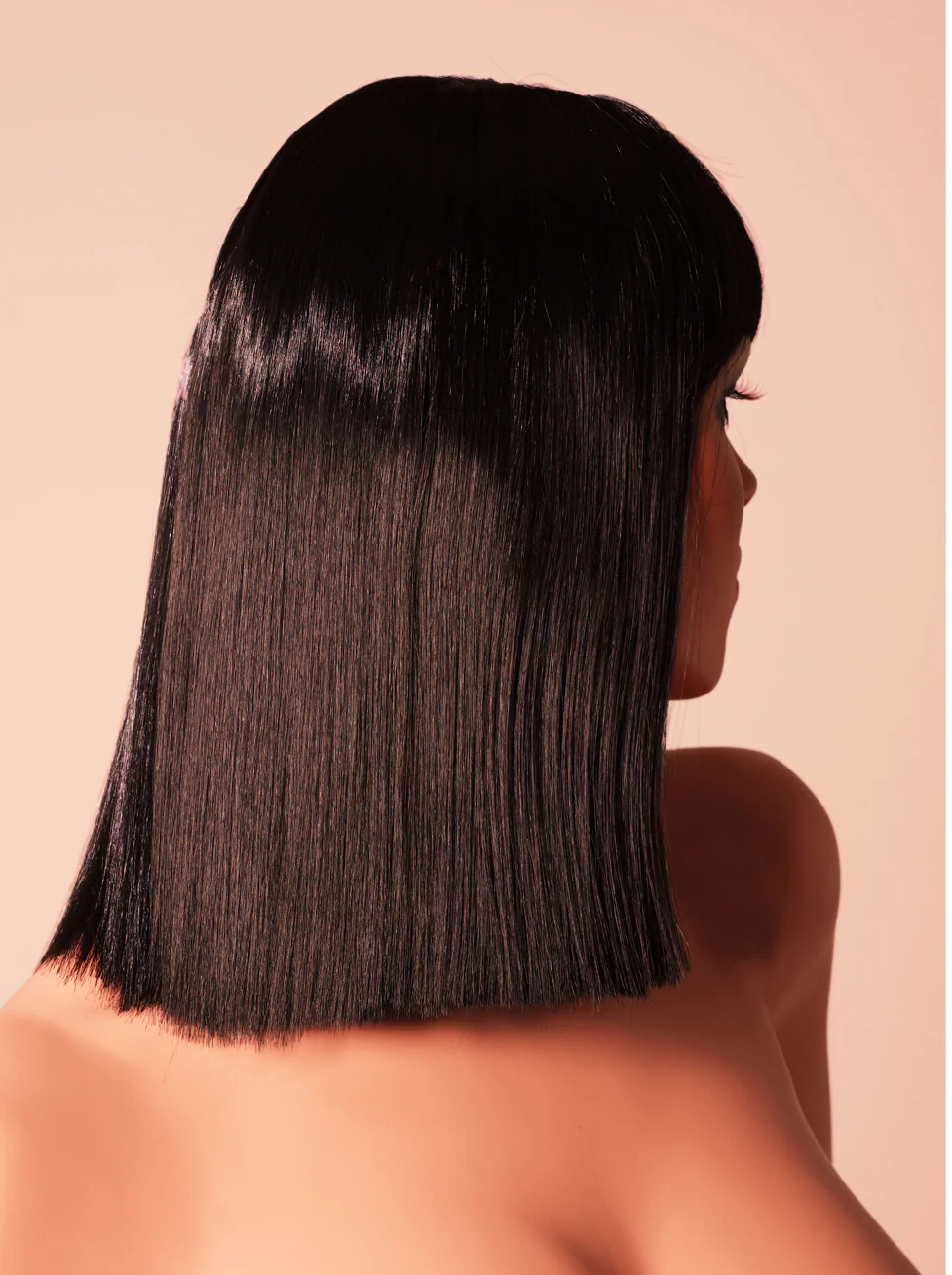 Blunt cut shoulder length black wig. Our wigs are crafted from the finest synthetic fibres, which are woven to an adjustable one-size cap. These fibres texture are both glossy and strong so look and feel like great quality, real hair!